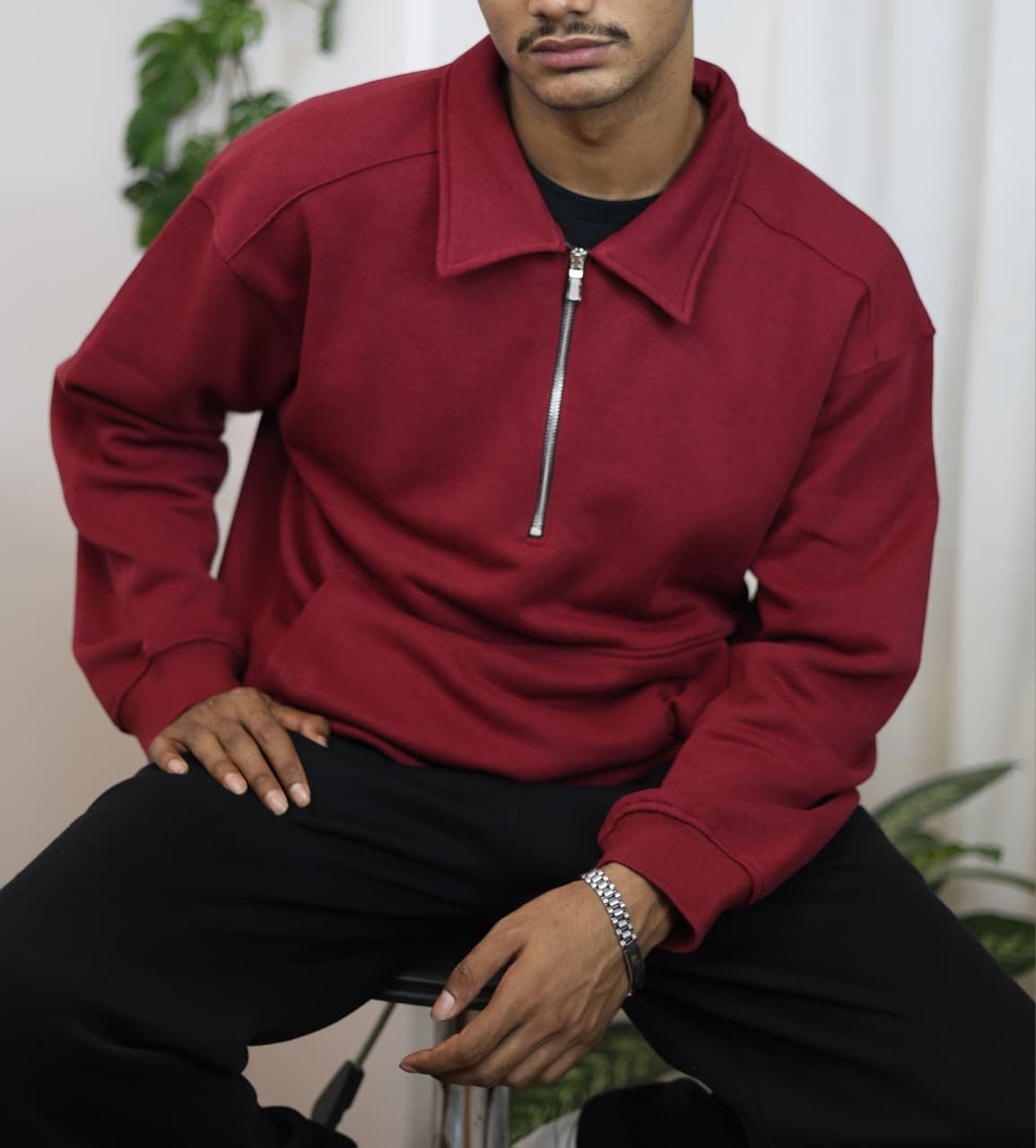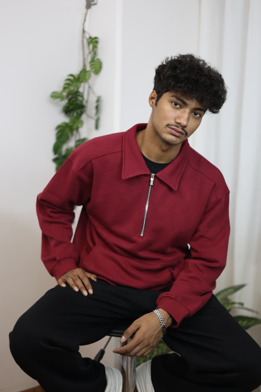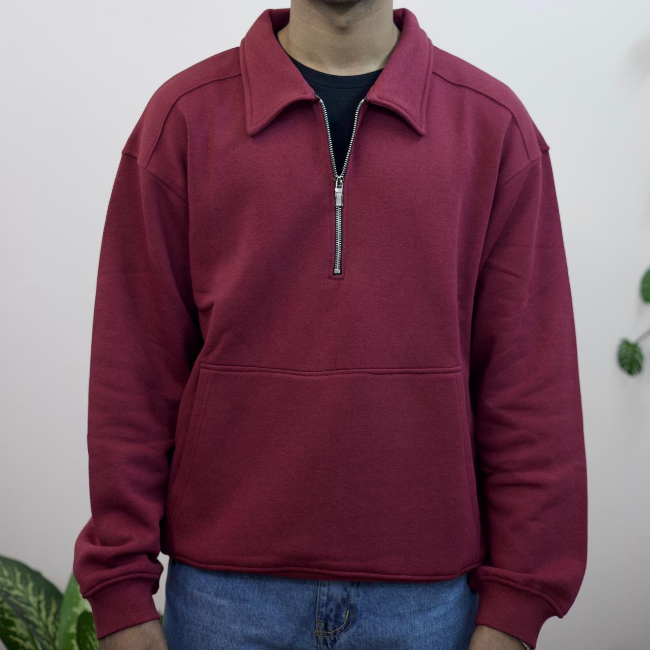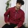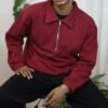 Half Zip Oversized Polo – Maroon