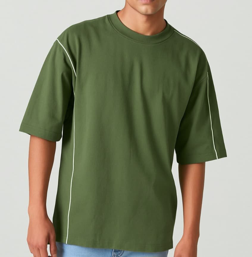 Plain Lines Oversized T-shirt – Olive (Combo)